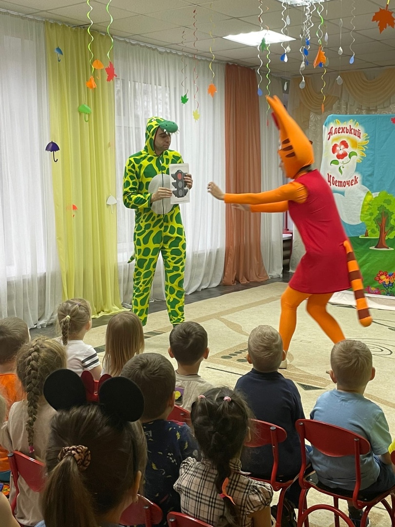 Спектакль о правилах дорожного движения. Герои спектакля рассказали свою историю, поиграли с ребятами и помогли освоить несложные, но такие важные правила.